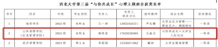 2.西北大学第三届“与你共成长”心理主题班会
