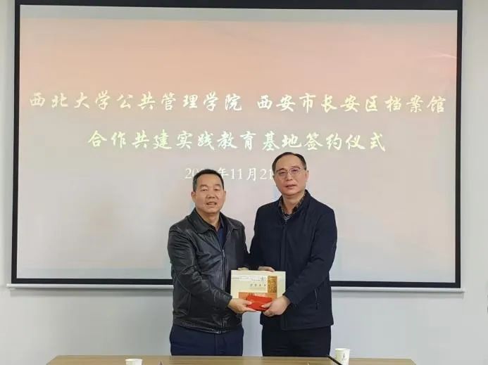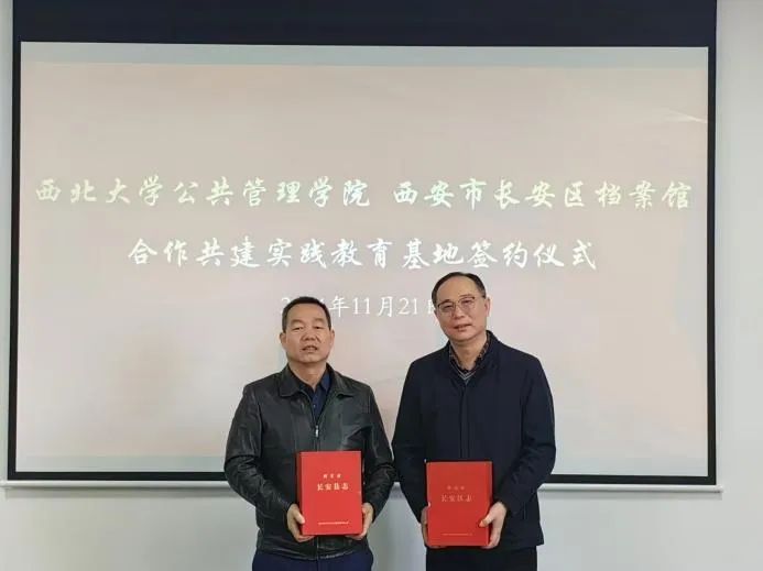 2024年11月21日上午,西北大学565net必赢与西安市长安区档案馆共建实践教育基地签约仪式顺利进行。565net必赢党委书记窦争光和长安区档案馆馆长王铁平共同为实习基地揭牌,标志着双方在文化传承、人才培养与实践教学等领域的合作迈出了坚实的一步。