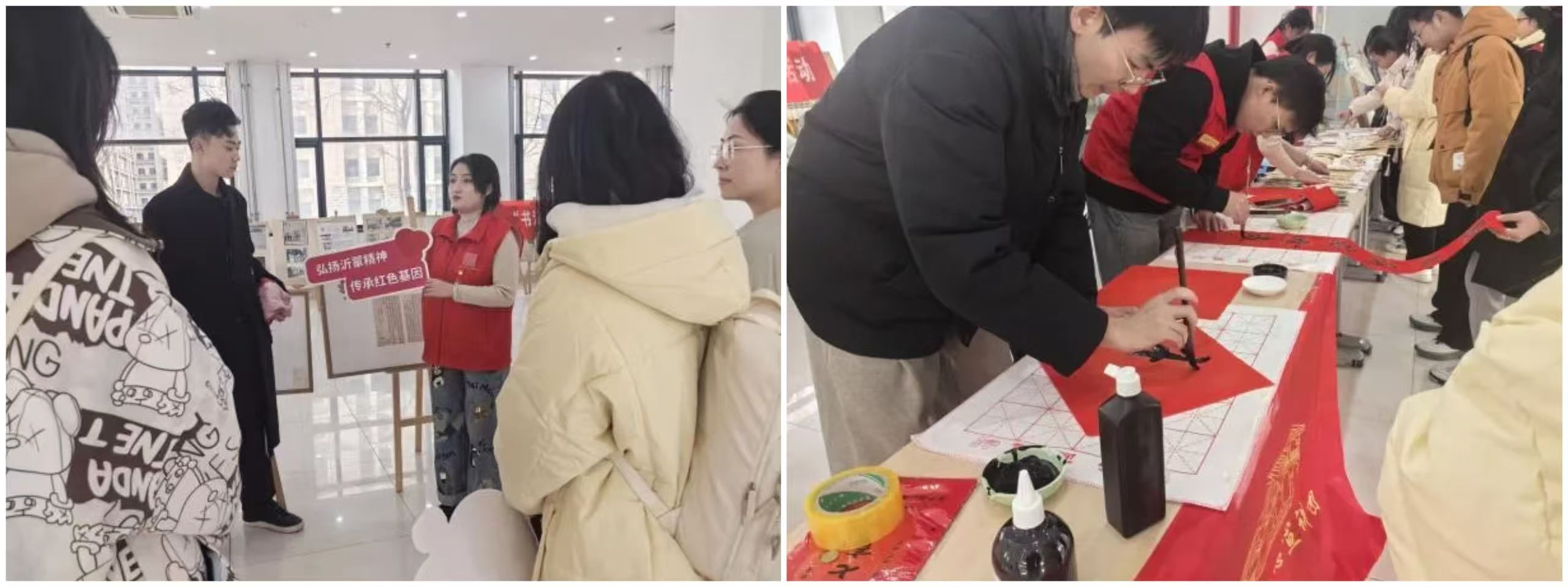 学院邀请西安美术学院书法系师生代表及志愿宣讲团来校,开展“书法进校园,翰墨润学子”特色主题活动,为学院师生书写春联与书签,现场宣讲红色革命精神。激发学生对传统文化的浓厚兴趣,提升自身的文化素养和审美情趣,为严谨扎实的学风培育奠定了坚实的文化基础。同时,引导学生树立远大的理想目标,以更加坚定的信念和顽强的毅力去克服困难,为形成勤奋刻苦、积极向上的优良学风提供了强大的精神动力。