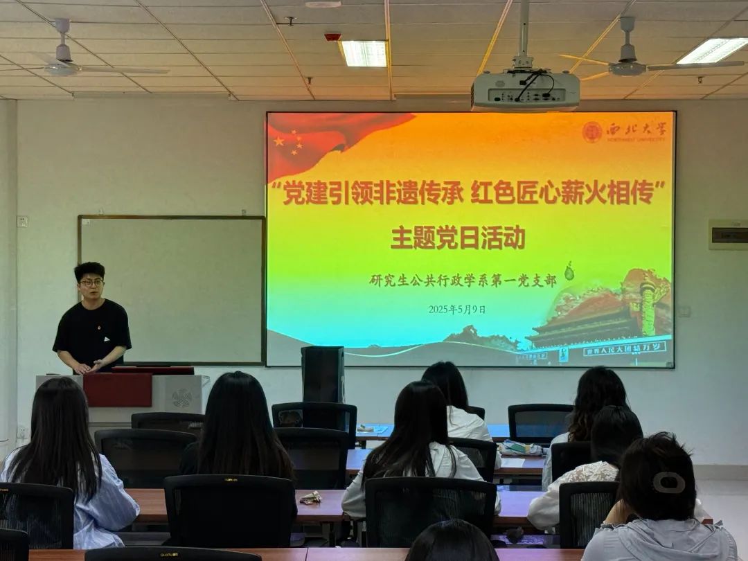 为深入贯彻落实习近平总书记关于传承弘扬中华优秀传统文化的重要论述,推动党建引领与传统文化保护深度融合,研究生公共行政学系第一党支部于5月9日组织开展“党建引领非遗传承 红色匠心薪火相传”主题党日活动,通过非遗文化宣讲、沉浸式体验与交流研讨,激发支部党员传承红色基因、守护文化根脉的责任担当。
