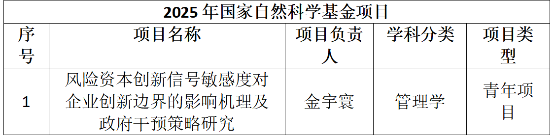 本年度学院共有5位教师提交了国家自然科学基金申报书,学院组织五轮专家同行的论证会对申报书点评指导,最终1人获批青年项目。具体项目为:金宇寰博士后申报的《风险资本创新信号敏感度对企业创新边界的影响机理及政府干预策略研究》。