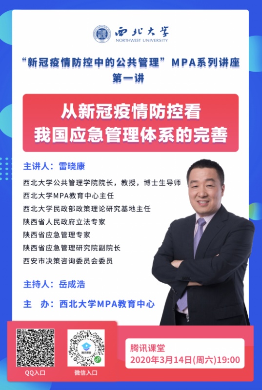 4. 西北大学MPA“新冠疫情防控中的公共管理”系列讲座:第一讲(在线)