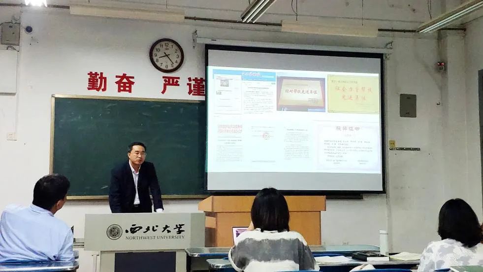 以国内外图书馆建设框架为对比,以日本、美国及国内著名高校为例,冯永财馆长介绍了大学图书馆发展新趋势与发展定位——空间服务。冯馆长以西安科技大学的图书馆为案例进行分析,使同学们深刻领悟到数据化、智能化在未来工作和建设中的重要性,同时也让同学们认识到放眼内外、融会贯通是同学们必备的素质。在现今的大数据时代,信息管理技术、信息素养教育在图书馆建设中的地位愈发凸显,而其中的重中之重是读者服务。如通过举办“大学生网络知识检索大赛”进行信息素养教育培养、加强馆员队伍建设;在科学规划与环境保护两方面着力,并与人文关怀相结合;把创客空间放在图书馆里,把创新精神点亮在图书馆中……冯馆长的细密分析引发同学们思考未来应如何利用长安校区图书馆来实践课本所学,从而让知识活起来、让课本动起来。