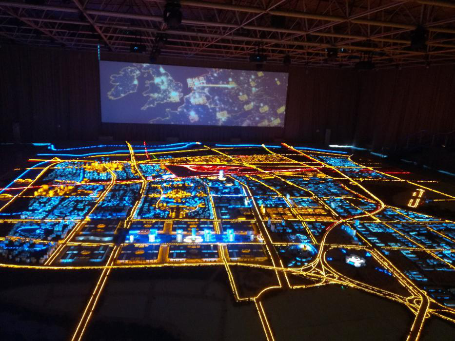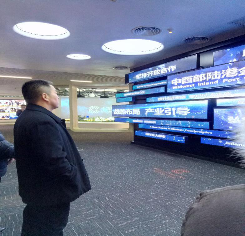 上午九点三十分,一行人准时到达西安国际港务区规划馆,开始了本次实践教学活动。在规划馆讲解员的带领下,实践小组有序入馆并观看规划片。短短十五分钟的影片详细介绍了国际港务区的历史和未来,展现了内陆港人“西部雄心、全球视野”的开放胸怀,构建了今后发展的宏伟蓝图。银幕前方是国际港务区的缩略沙盘,霓虹闪耀的沙盘,展现了国家、政府对西部发展的科学规划与定位,震撼了在场的每一个人。