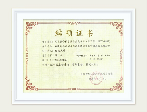 (国家社科基金重大项目“海峡两岸劳动力流动现状调查与劳动权益保障研究(项目批准号:18ZDA083)”结项证书)
