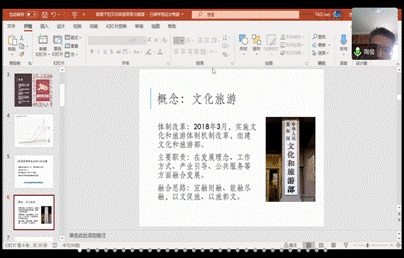 陶俊副教授对“新冠疫情下的文化旅游政策与学术展望”的主题进行了思考。他指出,文化旅游的主要职责是在发展理念、工作方式、产业引导、公共服务等方面融合发展;并分享了在此次疫情下的文旅政策,具体经历了“停业——复工复产——外防输入,内防输出扩散”三个阶段。同时,列举了武汉封城下的文化旅游政策以及春节文化旅游产业的损失等,由此引出了对复产复工问题、失业问题等社会问题的思考,并作出了相关的学术展望。