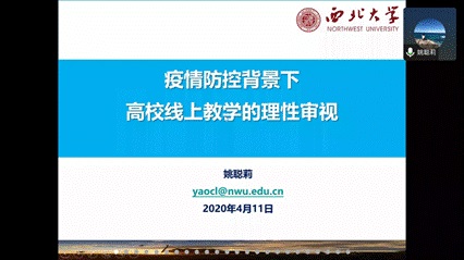 姚聪莉教授讲述了“疫情防控背景下高校线上教学的理性审视”。她从调研概述、在线教学面临的挑战和困境、运用系统思维,破解教学难题,三个方面进行了分享。在问题中,她指出,此次疫情发生后,线上教学使教育教学的思想观念和思维方式受到挑战,反映出了我国线上教学的体系还不够完善、质量保障体系不够健全、城乡教育资源设置不均衡等问题。她提出要运用系统思维破解在线教学难题。