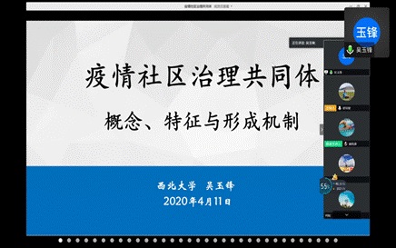 吴玉锋副教授从“疫情社区治理共同体——概念、特征与形成机制”主题进行了分享,他认为,除了国家治理能力,社区层面的治理能力是国家治理能力的末端,发挥着对国家治理能力的补充作用。在讲述全球疫情防控的阶段性时,吴老师分析了意大利借鉴中国防控模式的案例,得出“疫情防控的基础条件是社区共同体的形成,社区层面的治理是国家治理能力的补充”的结论。随后,吴老师分享了社区治理共同体的概念和其“主体合作、阻断聚集、信息共享、心理互助、互惠互助”的特征,并指出,在此次疫情中,社区共同体的内涵是:共克时艰、同舟共济、众志成城。最后,他对社会资本解决了“政府失灵”的困境进行了讲解,指出社区治理共同体的形成机制是政府与社区携手治理疫情。