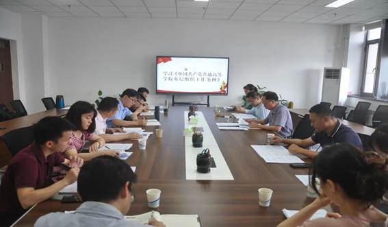 其次,会议学习了《中国共产党普通高等学校基层组织工作条例》, 我院党委书记孙录见详细介绍了《条例》修订的背景、过程和意义。他表示,《条例》的修订和实施,对于全面贯彻党的教育方针,落实我院立德树人的根本任务,建设我院高质量教育体系,培养好社会主义建设者和接班人,具有十分重要的意义。