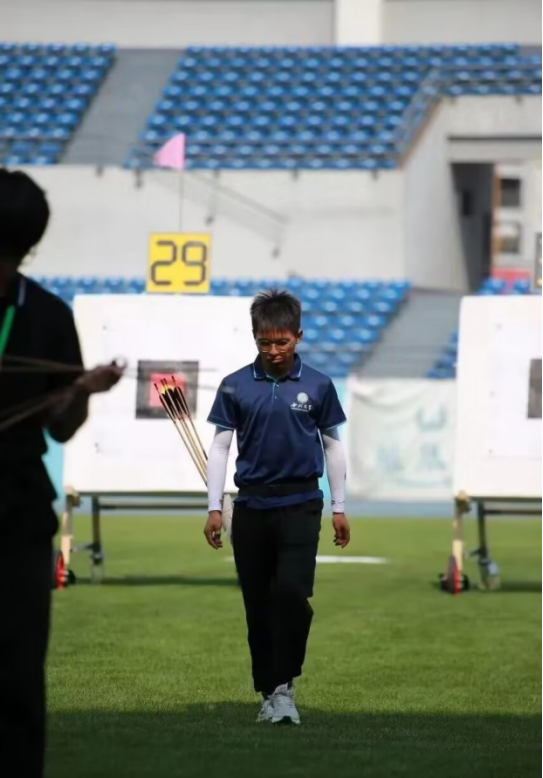 在接下来的淘汰赛中,瞿发钒同学不畏困难,勇于拼搏,沉着应对,先后击败来自不同学校的强劲对手,最终荣获传统弓甲组男子个人淘汰赛第六名的优异成绩!