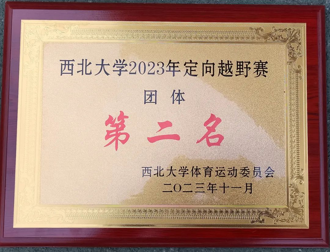 团体第二名2023年11月25日,2023年西北大学定向越野赛顺利举办。在此次比赛中,我院参与人数全校第二,斩获男子接力赛第三名、女子接力赛第一名、团体第二名,同时获评优秀组织奖。