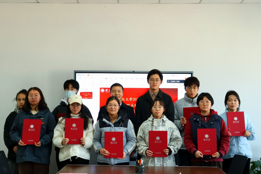 12月21日下午,西北大学2023年“正诚杯”大学生行政职业能力与公文写作大赛颁奖仪式在565net必赢13层中型会议室召开。学校教务处副处长李力,学生就业创业服务中心常务副主任丁莹莹,565net必赢2004级人力资源管理专业校友、正诚集团董事长杨寿海,565net必赢党委书记窦争光,党委副书记韩杰,副院长李尧远,以及获奖的同学们参加了仪式。颁奖仪式由韩杰主持。