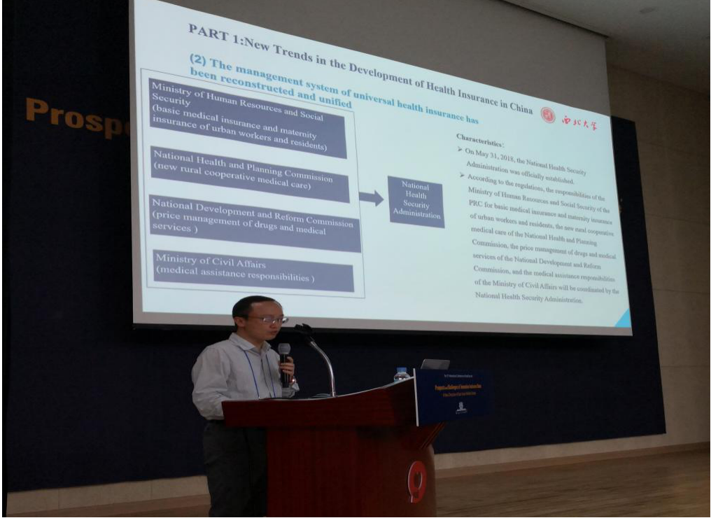 9月7日下午, 基地专家翟绍果教授在医疗保险分论坛作了主题为《中国医保发展动态、挑战与应对》的报告。翟绍果教授从中国基本医疗保障在制度框架基本定型、管理体制重构统一和待遇水平稳步增长三方面对我国医保发展的新动态作以详细介绍。同时,翟绍果教授提出当前我国医保发展仍存在诸如医保筹资动态均衡化、医保待遇公平适度化、医保管理效率性法治化等新的挑战。而面对当前医保挑战,则需要进一步加强医保资源均衡化配置、医保服务结构性改革以及医保网络协同性治理。从而实现维护医疗保障相关主体的合法权益,促进医保制度的可持续发展。