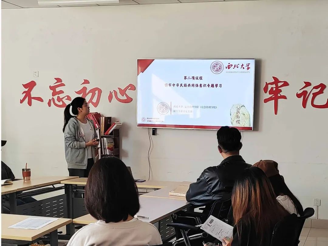 为铸牢中华民族共同体意识,我院研究生联合党支部于2023年11月1日在西学楼北1515党员活动室开展线下党员大会,力求通过此次会议,增强党员认同感,增强民族认同感。同时也在贯彻习近平新时代中国特色社会主义思想过程中汲取奋发进取的智慧和力量,永争先锋,更好地推进样板支部建设工作。大会由研究生联合党支部书记张珺敏同志主持。