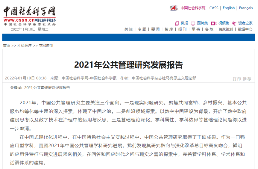 【参考:中国社会科学网、中国社会科学报2022年1月10日发布《2021年公共管理研究发展报告》;作者:中国社会科学杂志社马克思主义理论部;执笔:茜雪】