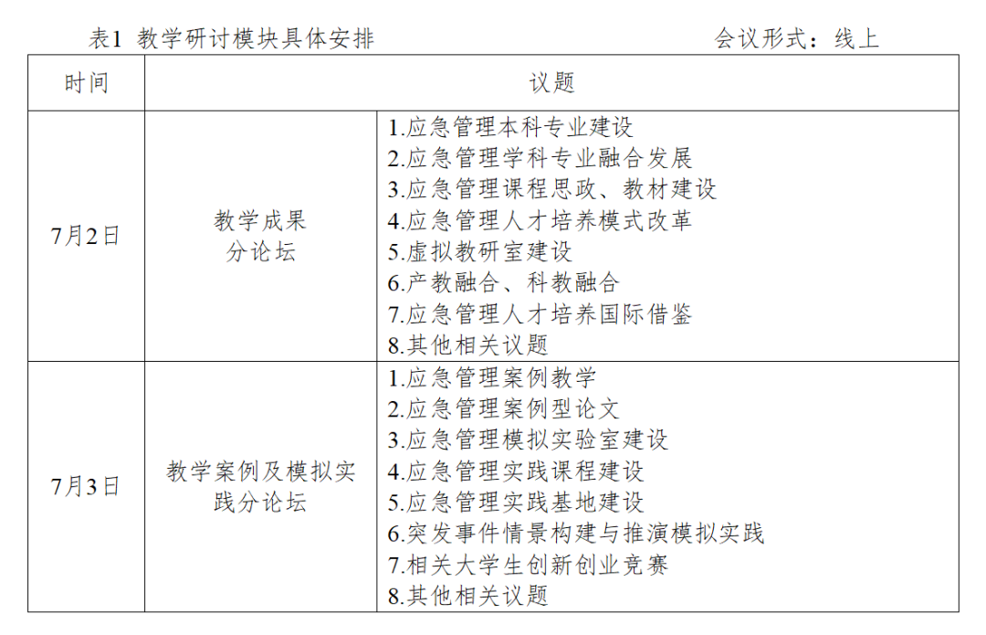 会议拟采用线上线下混合方式进行。论坛分两个模块进行。模块一为“教学研讨模块”,时间为7月2—3日。模块二为“主论坛及特色论坛模块”,时间为7月8—9日。