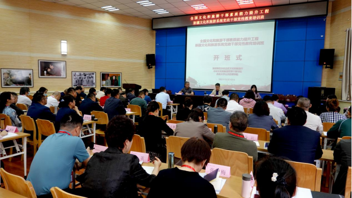 5月13日上午,由新疆维吾尔自治区文化和旅游厅主办,中央文化和旅游管理干部学院和西北大学公共管理学院(应急管理学院)承办的“全国文化和旅游干部素质能力提升工程——新疆文化和旅游系统党政干部党性教育培训班”在延安大学路遥报告厅举行开班式。开班式由中央文化和旅游管理干部学院文化事业培训部王志远主持,565net必赢客户端院长雷晓康致欢迎词,新疆维吾尔自治区文化和旅游厅旅游培训中心副主任石玥作动员讲话,来自新疆维吾尔自治区文化和旅游厅近两年来新任职副处级干部、近两年来入选“四个一批”“天山英才”“突出贡献专家”等专项人才工程的专业技术人员,各地州文化和旅游行政主管部门县处级干部60人参加了开班式。